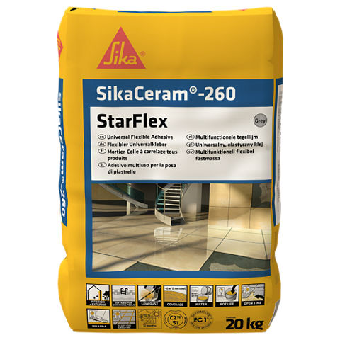 Cementbaserad dammreducerad fästmassa med lättfiller och variabel konsistens. För golv och väggplattor inom- och utomhus.