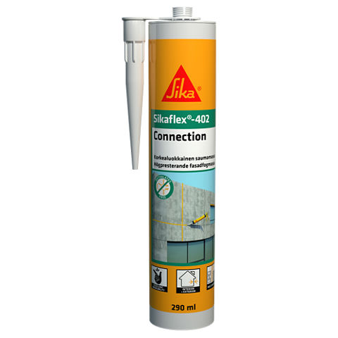 Sikaflex®-402 Connection är en 1-komponent, fukthärdande, lågmodulär och elastisk fogmassa. Den används för hållbar tätning av rörelse- och anslutningsfogar i betong- och murade fasader. Bildar en vattentät fog med goda mekaniska egenskaper, förblir elastisk i kallt klimat. Rörelseförmåga ± 25% inne och ute.